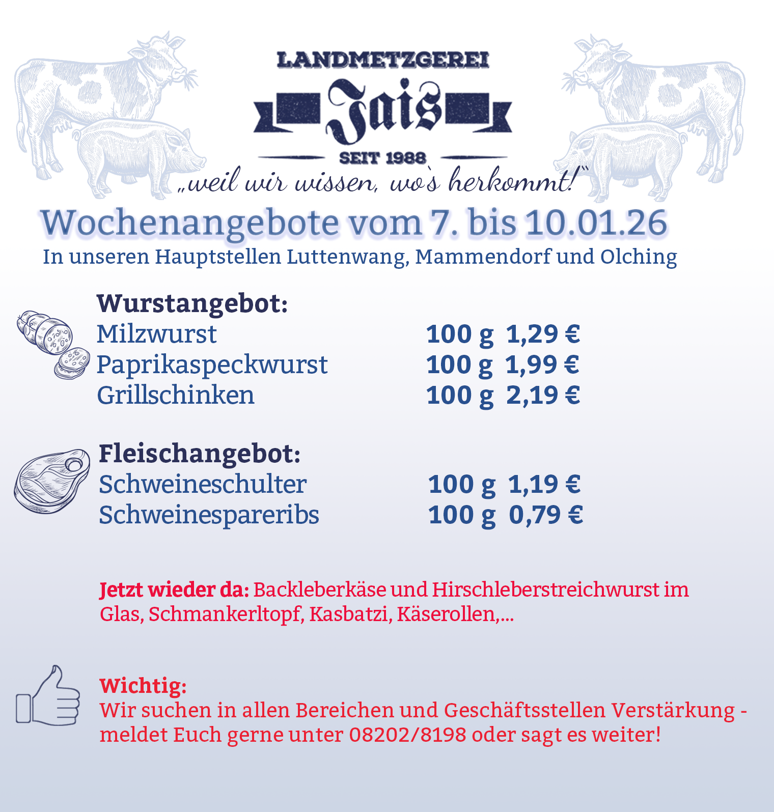 Weil uns Kundenservice wichtig ist, haben Sie jetzt auch nach Geschäftsschluss oder am Ruhetag die Möglichkeit, unsere gewohnte Fleisch- und Wurstqualität zu kaufen. Der bis oben hin gefüllte Automat steht vor unserer Filiale in Mammendorf.